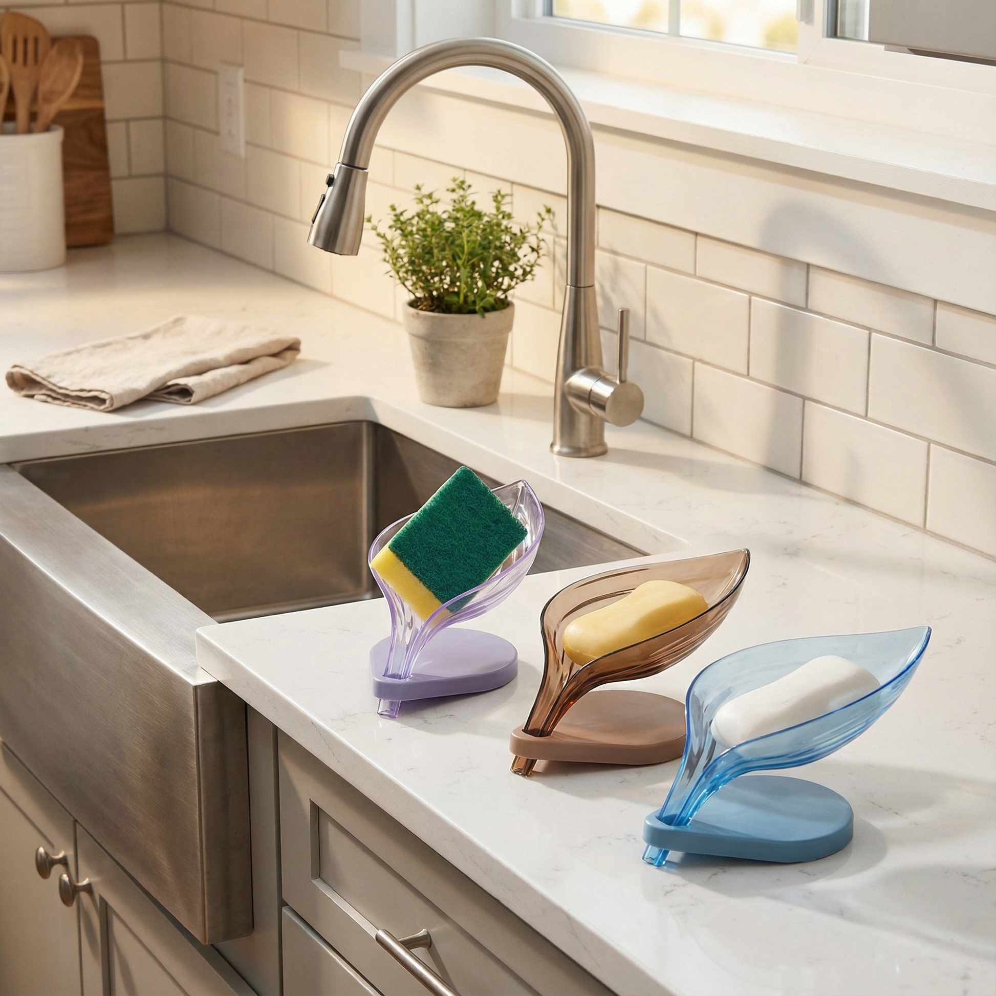 Upgrade your bathroom and kitchen with this stylish leaf-shaped soap holder designed to keep your soap dry, clean, and long-lasting. Smart drainage holes prevent water buildup, reducing soap wastage and mess.